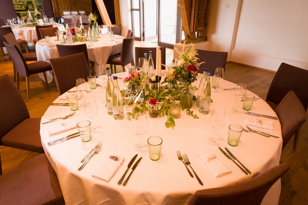 Der Hirsch in Dellmensingen bietet zudem viel Platz für Band oder DJ sowie eine großzügige Tanzfläche, die zum Feiern bis in die Nacht einlädt. Die Raumaufteilung ermöglicht einen stimmigen Übergang vom festlichen Dinner zur ausgelassenen Party, ohne dass es beengt wirkt.