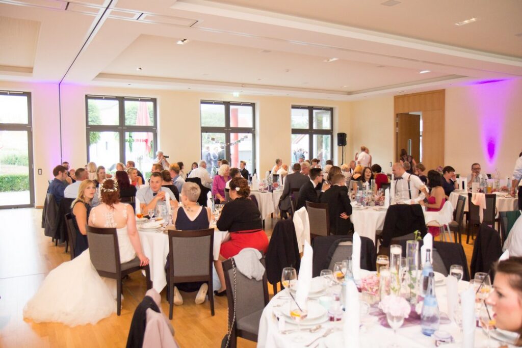 Ein großer Vorteil der Location ist das angrenzende Hotel, das komfortable Übernachtungsmöglichkeiten für Gäste und Brautpaar bietet. So können lange Anfahrtswege vermieden und der Hochzeitstag entspannt ausklingen gelassen werden – ein Punkt, der besonders bei Hochzeiten mit Gästen von weiter her sehr geschätzt wird.