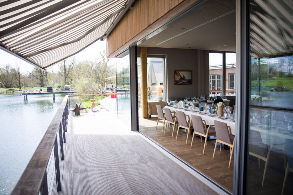 Besonders hervorzuheben ist der liebevoll gestaltete Außenbereich, der sich perfekt für freie Trauungen direkt am Teich oder See eignet. Die natürliche Kulisse, das ruhige Wasser und die offene Umgebung schaffen eine romantische Atmosphäre für persönliche Zeremonien unter freiem Himmel – ein Ort, der sich auch fotografisch wunderbar in Szene setzen lässt.