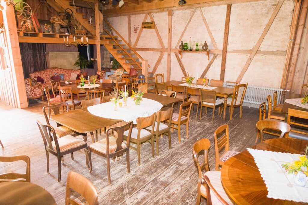 Der sehr große Hof prägt den Charakter der Location maßgeblich. Als ehemaliger Bauernhof versprüht der Kulturhof einen authentischen, rustikalen Look mit viel Platz zum Ankommen, Verweilen und Feiern. Der großzügige Vorhof eignet sich hervorragend für Sektempfänge, Gruppenfotos, Spiele oder einfach für entspannte Gespräche unter freiem Himmel. Durch die Weitläufigkeit verteilt sich das Geschehen ganz natürlich, ohne dass es jemals gedrängt wirkt.