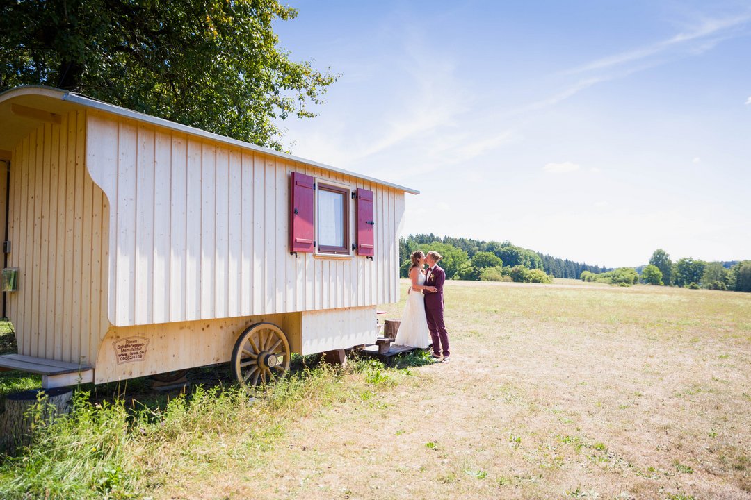 Ein weiterer großer Pluspunkt sind die flexiblen Übernachtungsmöglichkeiten. Auf der großen Wiese können Gäste mit Zelt oder Camper übernachten, was der Hochzeit einen festivalartigen, sehr freien Charakter verleiht. Dadurch kann der Abend entspannt ausklingen und das gemeinsame Beisammensein oft bis in die frühen Morgenstunden fortgesetzt werden.