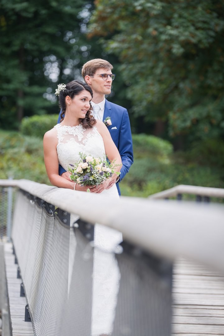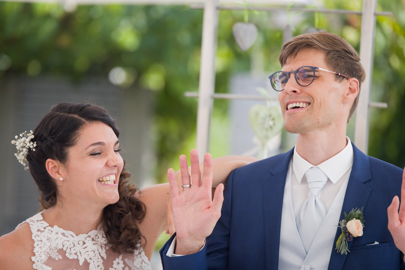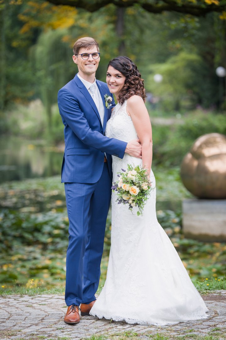 frohes Brautpaar beim Hochzeitsshooting im Glacis Park in Neu-Ulm