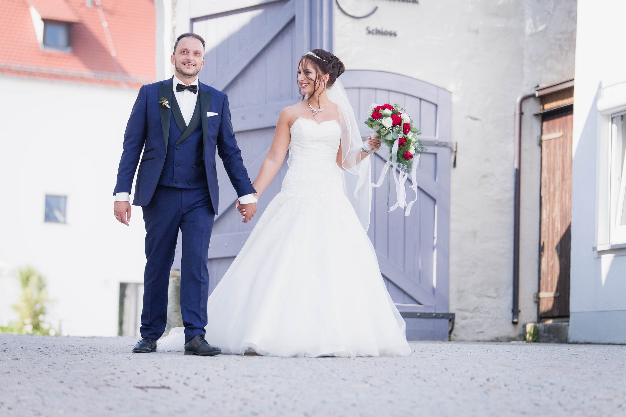 Glückliches Brautpaar beim Paarshooting in Leipheim Zehntstadel